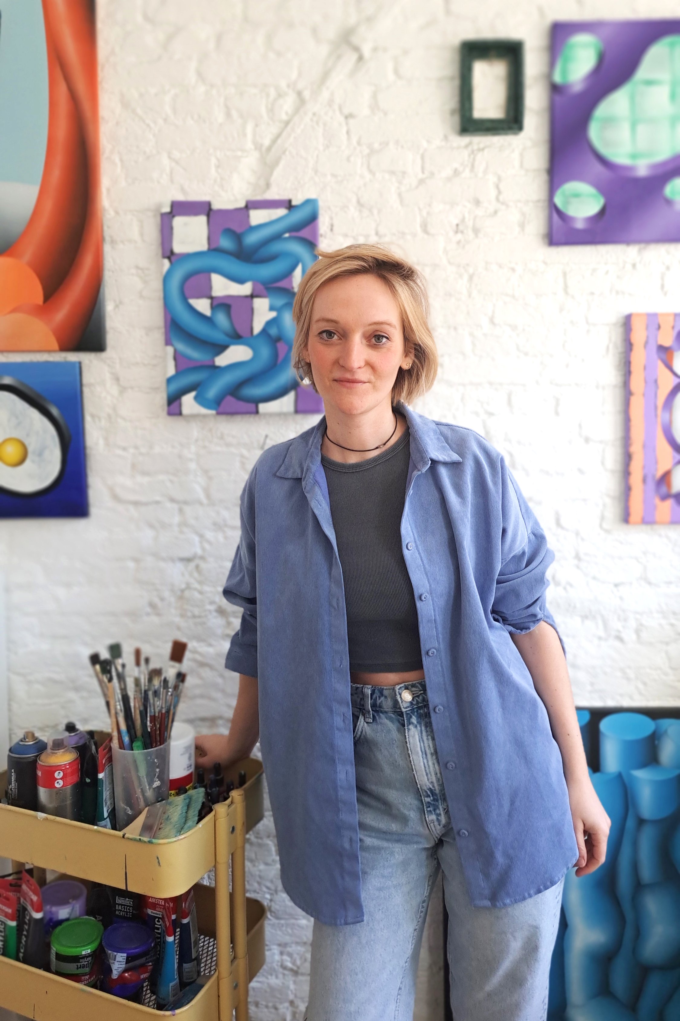 In her work, organic substitutes, such as flowers and natural structures, merge with abstract and architectural forms. Digital objects, which originally lacked taste, acquire texture, weight, and physical presence through painting and ceramics. The tension between digital perfection and manual imperfection remains visible.